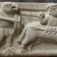 Ce bas-relief, de même que son pendant inv.16247.2, provient de l’ancienne abbaye de Talloires, fondée au XIe siècle sur les rives du lac d’Annecy. Leur emplacement exact reste difficile à définir. Selon Brasier (1887), ils servaient de chapiteau à l’une des six colonnes qui décoraient le portail de l’église abbatiale. Il reprend la description d’Albanis-Beaumont qui écrivait en 1802, insistant sur l’aspect primitif de ces deux reliefs : ils sont placés « à l’entrée de l’église de Taloire sur deux espèces de pilastres en forme de chapiteaux (…) ». Ils « sont en marbre gris, et ont environ deux pieds et demi de haut sur presque autant de large (…). Les pilastres qui supportent ces bas-reliefs, ainsi que les colonnes qui ornent la porte d’entrée de l’église de Taloire ont visiblement servis dans leur origine à une autre édifice (…) ». Christiane Boekholt propose de comparer la composition ainsi décrite du porche de l’église de Talloires avec celle du porche de l’église de Lutry près de Lausanne, rapprochement d’autant plus pertinent que cette église abbatiale fut également construite au XIe siècle par des moines bénédictins dépendant de l’abbaye de Savigny. Elle reprend un même plan bipartite : une partie réservée aux moines au niveau du chœur et une nef mise à disposition de la paroisse. Cette comparaison pourrait donner une idée de la disposition des reliefs aujourd’hui au Musée-Château. Lorsque la Révolution condamna l’abbaye, C.-H. Despine récupéra ces morceaux de sculpture et les transporta dans sa propriété où ils restèrent jusqu’en 1863 lorsqu’il en fit don au musée d’Annecy. Deux autres chapiteaux de Talloires se trouvent dans un oratoire sur la route de Menthon à Talloires (Paul Dufournet, « Les oratoires de Savoie », Revue savoisienne, 1er et 2nd trim. 1953, p. 66). Il s’agit de chapiteaux à feuillages d’une facture simplifiée. Selon Marteaux et Serand, ils ornaient les dix piliers de la grande nef (1893, p. 36). Deux autres chapiteaux seraient dans une collection particulière à Talloires (Boekholt, 1977). L’interprétation reste complexe, les deux reliefs se faisaient certainement pendant, peut-être installés de chaque côté du porche. Le premier montre une sorte de monstre à tête d’oiseau, couvert d’une peau de bête, les pieds griffus, qui vient de décocher une flèche à un centaure coiffé d’une calotte qui s’enfuit déjà, blessé au flanc. Le centaure porte un arc. L’autre relief représente une figure de Cerbère, le chien à trois têtes appartenant à la mythologie grecque, ici à têtes de lion, de chèvre et de serpent (?), blessée par la même flèche, également tirée par le personnage griffu du premier relief (?). A ses côtés se tient un homme sauvage, petit personnage difforme, nu, les genoux repliés. Cahier a donné une interprétation de ces figures : il s’agit de l’homme sauvage qui débarrasse la Terre des monstres représentant le pêché en tuant le centaure et la chimère. L’homme souriant symboliserait l’âme sauvée, ayant échappé aux deux monstres (Nouveaux mélanges d’archéologie et d’histoire, cité dans Le Roux, 1910). La taille assez frustre des reliefs et le manque de modelé peuvent s’expliquer par la qualité de la pierre, un calcaire assez dur. Cependant il faut noter les tentatives réussies du sculpteur pour s’affranchir de la forme du chapiteau avec lequel il joue dans la composition des scènes, comme avec les pattes du personnage griffu dont les serres s’accrochent à la bordure ou encore avec les têtes du Cerbère qui semblent se déployer en éventail. La qualité des détails est sensible dans la représentation des matières, poils, plumes, écailles. Peu d’œuvres comparables existent sur le territoire. Dans la crypte de l’église Saint-Hyppolyte de Thonon, les atlantes présentent un même visage à la mâchoire carrée, les yeux ronds autrefois incrustés de plomb, les corps ramassés, les mains sur les genoux dans une attitude qui rappelle celle de l’homme sauvage sur le chapiteau de Cerbère à Talloires. Datés de manières plus ou moins fantaisiste du IXe ou du XIe siècle, en fonction des grands épisodes datés de l’histoire de l’abbaye, les chapiteaux de Talloires sont plus vraisemblablement à dater de la fin du XIe ou de la première moitié du XIIe siècle. Cependant les éléments de comparaison font défaut pour préciser cette datation. Ils sont un des rares témoignages de l’art roman sur le territoire savoyard et illustrent par la complexité du discours historié, l’importance de l’abbaye de Talloires, dont peu d’œuvres ont été préservées.