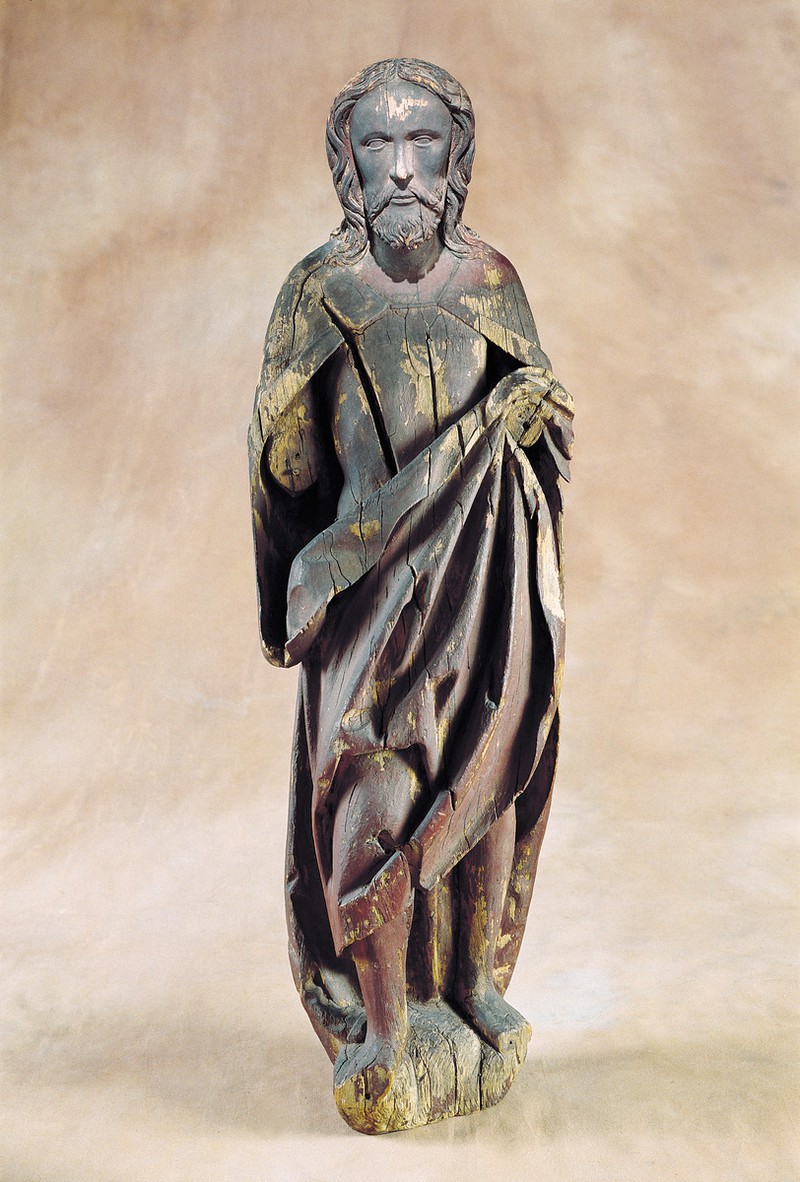 La parziale nudità della figura, il perizonium e l’espressione del volto suggerirebbero di identificare il soggetto con Cristo risorto. Gli esempi di imago resurrectionis (Auferstehungsfigur) fanno la loro comparsa a partire dal XIV secolo, e le sculture di Friburgo, d’Anklam o di Fulda ne testimonierebbero la diffusione. Tra le opere vallesane, un termine di confronto interessante è rappresentato dal Cristo di Mont-des-Oliviers, scoperto nel 1982 nell’ossario della chiesa di Loèche.